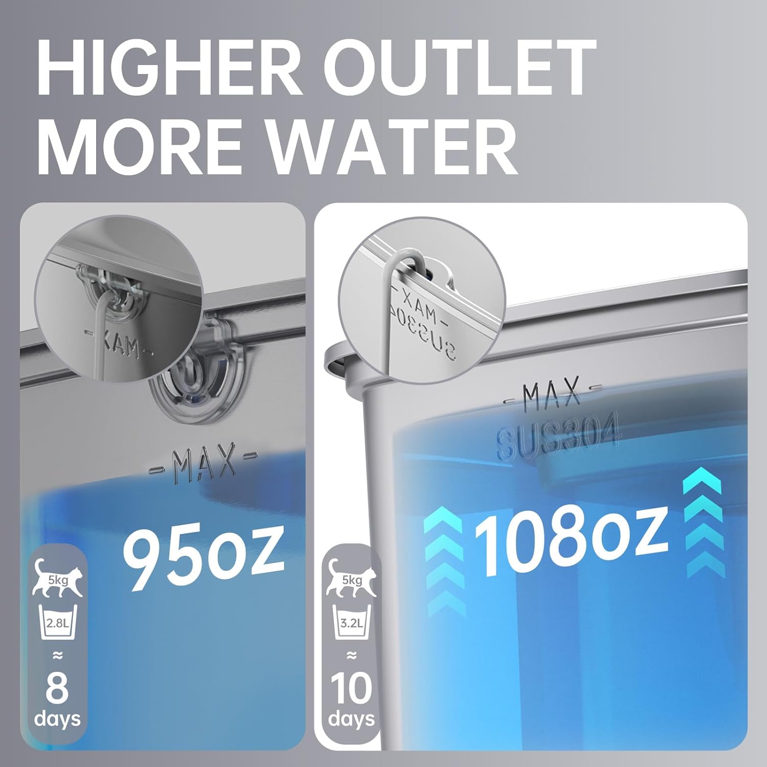 - Generous Capacity: 108 oz (3.2 L) capacity means fewer refills and more hydration for your pets.